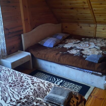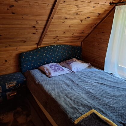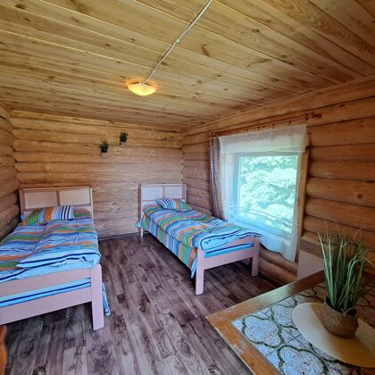 divguļamā un divas vienguļamās gultas. Namiņi ir divvietīgi- divos namiņos ir divguļamās gultas, vienā- divas atsevišķas gultas.