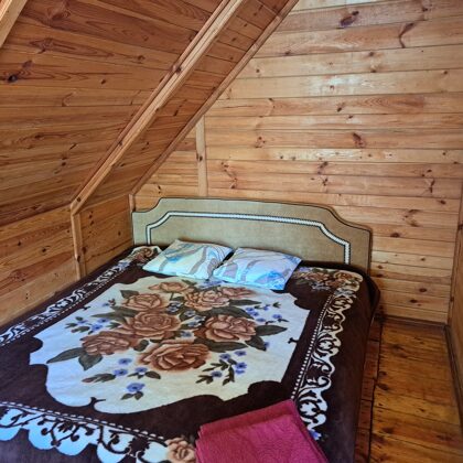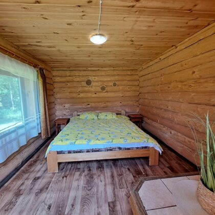 Naktsmītnes 15 personām. Atpūtas komplekss, kas sastāv no mājas un namiņiem, atrodas atsevišķā teritorijā no pārējām atpūtas zonām. Mājas pirmajā stāvā ir kamīnzāle/zāle svinībām līdz 40 personām,